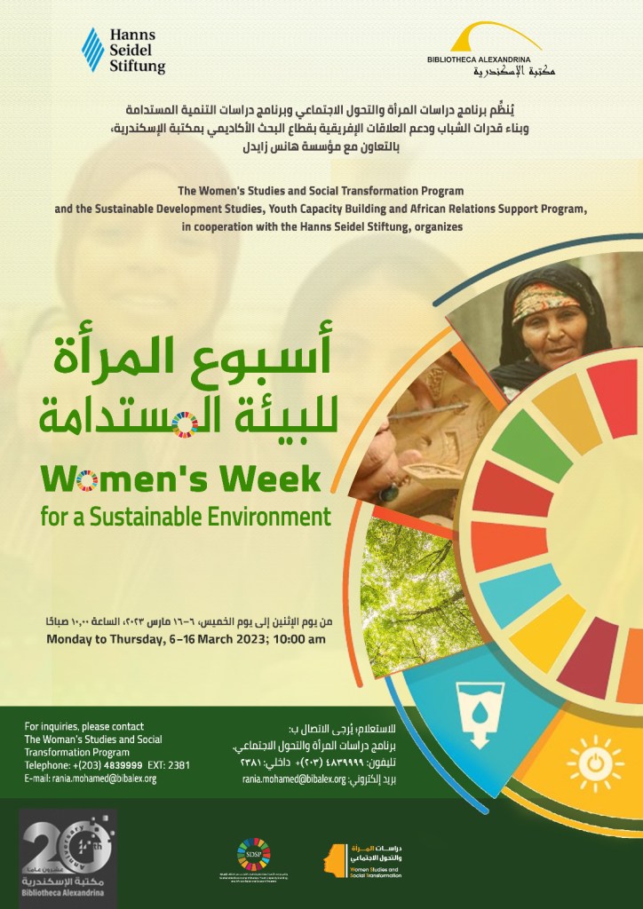 هذا وتسعى مكتبة الإسكندرية دائمًا إلى التركيز على دورها التنويري والثقافي الذي تلعبه؛ استكمالًا للجهود المجتمعية والسياسية التي تتبناها الدولة المصرية في مجالي دعم وتمكين المرأة، وأيضًا الحفاظ على البيئة وتحقيق أهداف التنمية المستدامة من خلال رفع الوعي المجتمعي بأهمية القضايا التي تناقشها الفعاليات والبرامج التدريبية وفتح آفاق وسبل جديدة لمعالجة المشاكل المجتمعية الخاصة بالمرأة والبيئة.