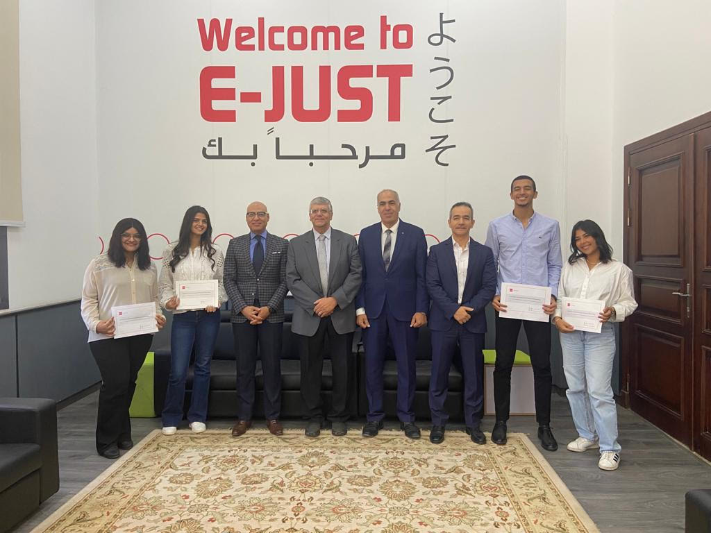 قام الدكتور عمرو عدلى رئيس الجامعة المصرية اليابانية للعلوم والتكنولوجيا بتكريم ٤ من الطلاب والطالبات بكلية ادارة الأعمال والانسانيات بالجامعة وهم عمر عياد و فرح علاء و ملك شريف و خلود مغربى لحصولهم على شهادات دولية فى معايير التقارير المالية الدولية والتى تمنحها واحدة من أهم الجمعيات على مستوى العالم لإعداد المحاسبين والمراجعين فى المملكة المتحدة وذلك فى