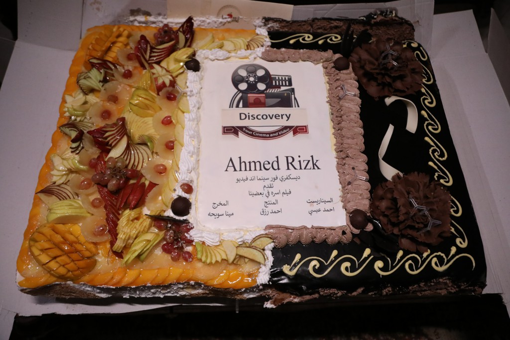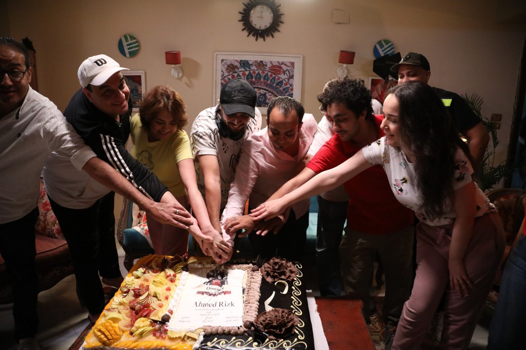 وفي ختام اليوم، إلتف صناع الفيلم حول التورتة لتقطيعها احتفالا ببدء تصوير الفيلم متمنين النجاح والتوفيق لجميع العاملين به.