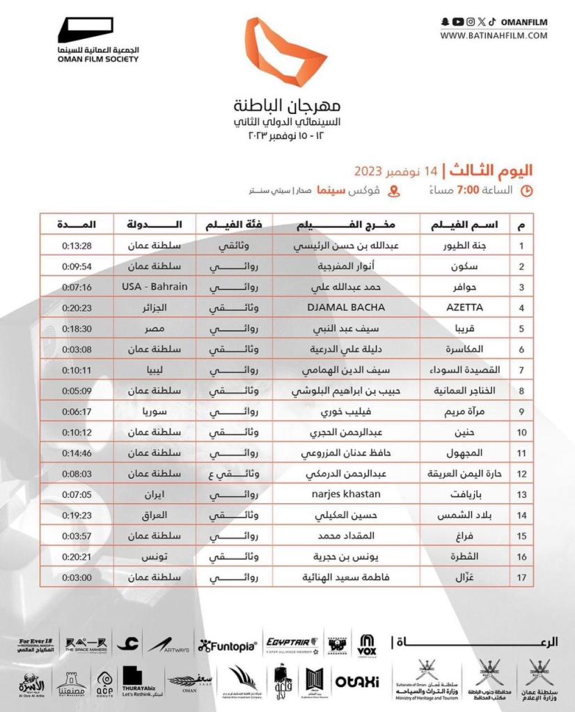 أعلنت ادارة مهرجان الباطنة السينمائي الدولي بسلطنة عمان أن الفيلم المصري “قريباً” سوف يتم عرضه في السابعة مساء يوم الثلاثاء المقبل الموافق 14 نوفمبر الجاري ، في فوكس سينما صحار بسيتي سنتر بسلطنة عمان ، وذلك ضمن المسابقة الرسمية لمهرجان الباطنة السينمائي الدولي الذي تستضيفه عمان ، في الفترة من 12 الي 15 نوفمبر .