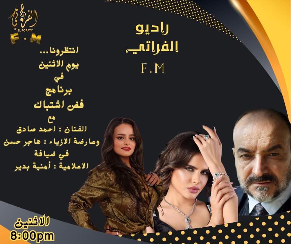 استضافت الإعلامية أمنية بدير كلا من الفنان أحمد صادق وعارضة الأزياء هاجر حسن في برنامجها الإذاعي الجديد ” فض اشتباك ” والذي يتم إذاعته علي راديو الفراتي FM الاثنين من كل أسبوع في تمام الساعة الثامنة مساءا..